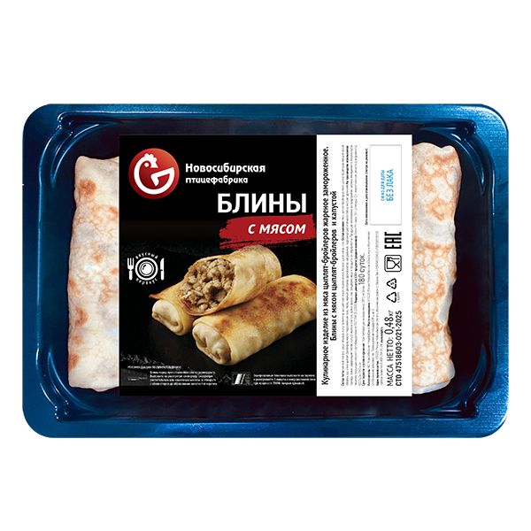 Состав начинки: мясо цыплят-бройлеров, лук, кожа цыплят-бройлеров, масло подсолнечное, соль, перец черный.